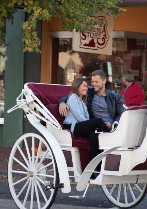 A Stafford County woman has been picked as one of the final four bachelorettes on the popular ABC reality show, and Monday's show (8 p.m.) will feature scenes of her in downtown Fredericksburg. Pictured here, the couple take a ride around downtown with Olde Towne Carriages during a filming session.